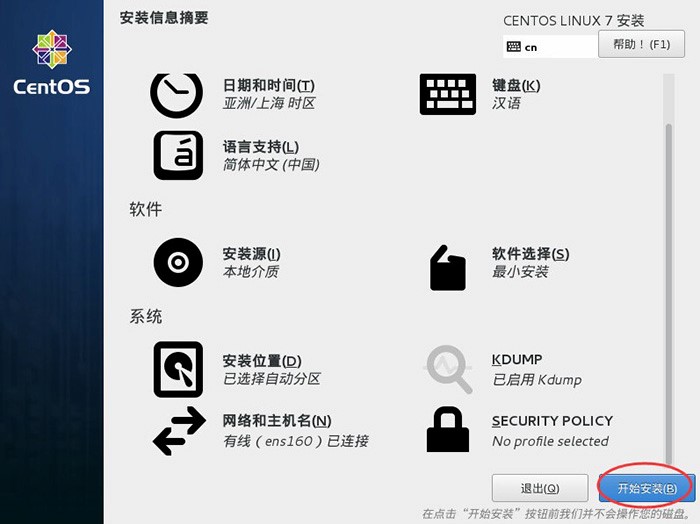 8、上述設置完成后,點擊“開始安裝”,如下圖: