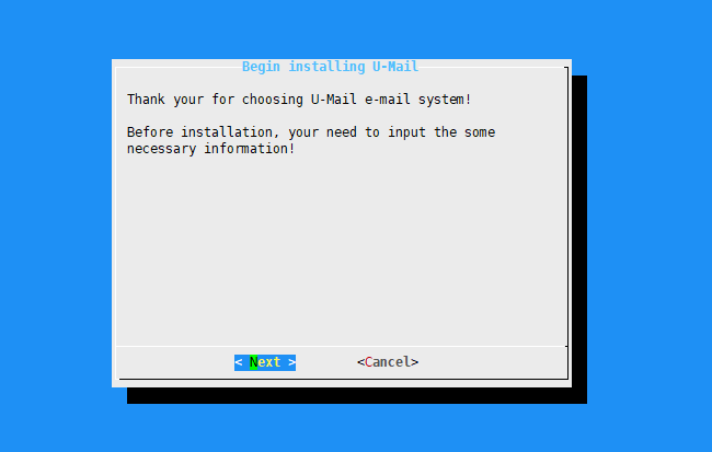 11、進入系統后,第一次會自動彈出U-Mail向導,選擇Next回車,如下圖: