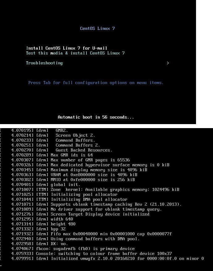 3、出現安裝界面后,選擇(默認)“Install CentOS Linux 7 for U-mail”按回車鍵,如下圖: