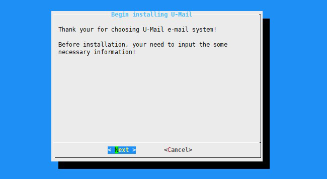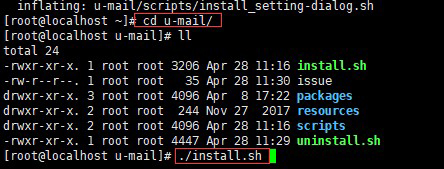 4、使用 cd 切換目錄至u-mail 目錄中,并且運行 【./install.sh】安裝腳本,注意前面有個“點"。