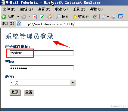 1.登陸U-Mail郵件服務器系統管理員后臺